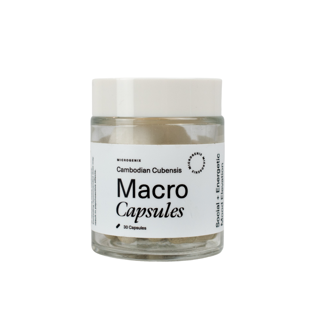 Our Cambodian Cubensis Capsules are derived from de-stemmed whole fruiting bodies of Psilocybe cubensis Cambodian strain. In order to maintain a consistent spectrum of psilocybin since they are grown in a lab, we use an organic, gluten-free and non-GMO rice flour base.