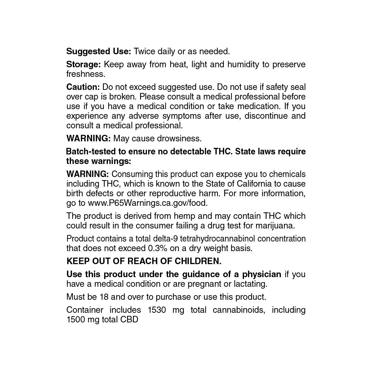 Alle Zutaten: Hanfextrakt (Cannabidiol, Cannabigerol, Cannabinol), MCT-Öl und natürlicher Geschmack.