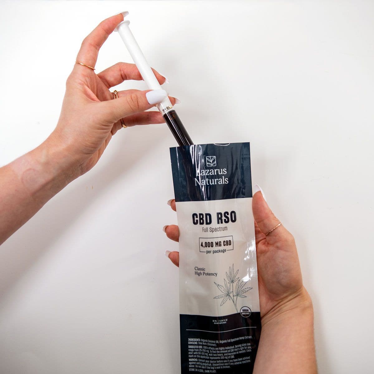RSO wird mit Hanfextrakt hergestellt, der eine hohe CBD-Potenz zusammen mit der gesamten Palette an Cannabinoiden und Terpenen der Pflanze liefert. Dieser Extrakt nutzt den Entourage-Effekt, was bedeutet, dass die gesamten kombinierten Wirkungen der Cannabinoide und Terpene größer sind als die jeder einzelnen Verbindung. Zusätzlich zu potenten Mengen an CBD enthält RSO Cannabinoide wie THC, CBN, CBG und CBC sowie Terpene.